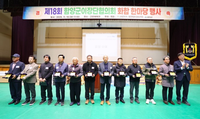 [코리아 이슈저널=김태훈 기자] 함양군은 11월 18일, 오전 11시 고운체육관에서 행정과 주민 간의 가교 역할을 하는 이장들이 한자리에 모여 ‘제18회 함양군이장단협의회 화합 한마당 행사’를 가졌다고 밝혔다.