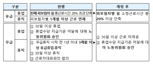 휴업, 휴직 등 유형별로 달리 정하고 있는 고용유지지원금 지원 요건은 ‘근로를 제공하지 아니하는 조치’로 통일된다. 복잡한 신청 요건을 단순화하여 현장의 이해와 활용도를 높일 수 있을 것으로 기대된다.