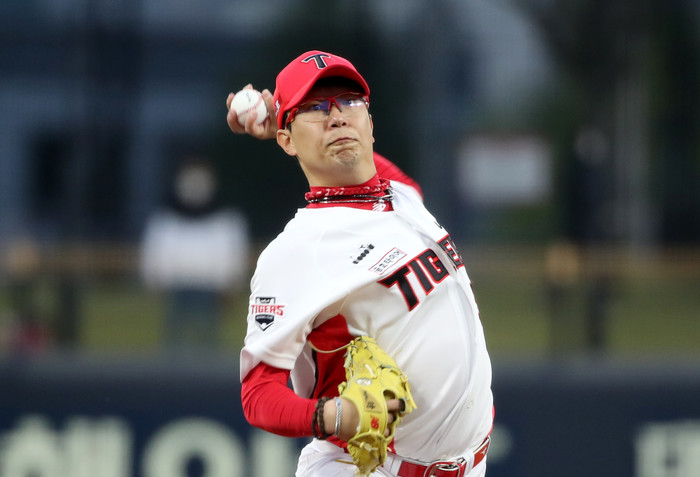 [열린의정뉴스 = 김윤영 기자] 14일 광주기아챔피언스필드에서 열린 프로야구 2022 KBO리그 롯데 자이언츠와 KIA 타이거즈의 경기에서 KIA 선발투수 양현종이 1회에 투구하고 있다. 2022.4.14