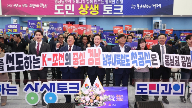 [코리아 이슈저널=김태훈 기자] 경상남도는 18일 거제 반다비체육센터에서 열린 ‘도민 상생토크’에서 기업혁신파크, 광역교통망, 미래산업 등을 연계한 성장전략을 제시하며 지원 의지를 밝혔다.