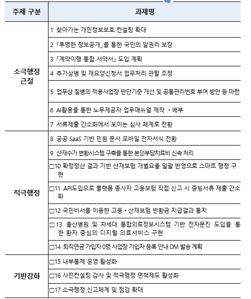 [코리아 이슈저널=최준석 기자] 근로복지공단(이사장 박종길)은'2026년 적극행정 실천과제'17건을 선정하고, 국민 불편 해소를 위한 현장 중심의 업무처리 절차 개선을 본격 추진한다고 밝혔다.