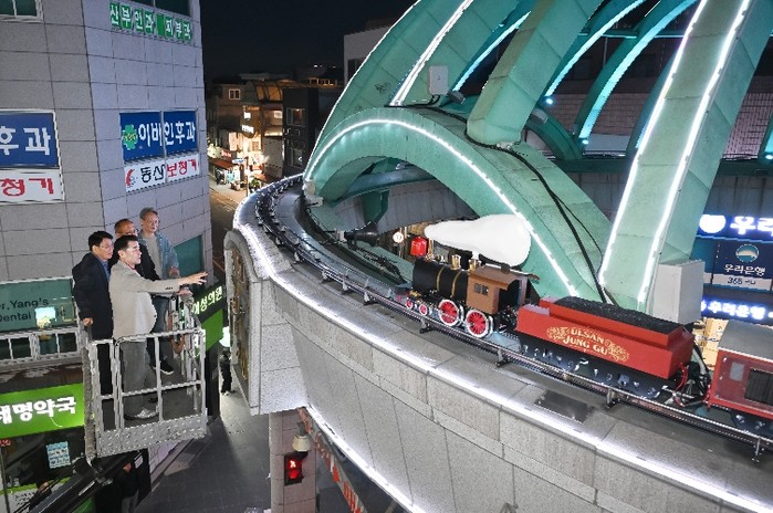 이번 현장점검에는 김영길 중구청장과 관계 공무원, 설치 업체 관계자, 문화의 거리 상인 등 30여 명이 참석해 시계탑 경관조명 설치 상태와 전기 설비 안전성 등을 점검하고, 모형 증기기관차 선로(레일) 상태와 구동 성능을 확인했다.