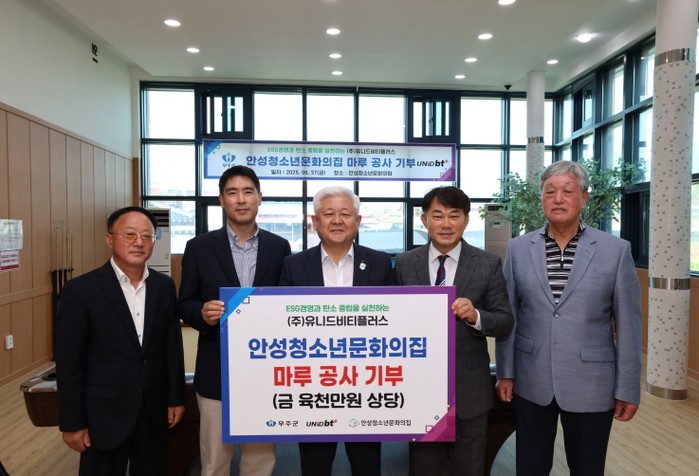 ㈜유니드비티플러스는 안성청소년문화의집 외에도 2024년에는 무주청소년수련관 및 무주군청소년상담복지센터에 마루 시공을 지원했으며, 2025년 4월에는 산불 피해지역 복구 성금으로 1천만 원을 기탁하는 등 지역사회와의 상생을 도모해왔다.