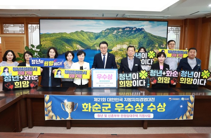 구복규 화순군수는 “이번 수상은 군민의 삶을 변화시키고, 지역의 미래를 준비하는 화순군 인구청년정책의 우수성을 다시 한번 전국적으로 인정받은 성과”라며, “앞으로도 주거에서 일자리, 자녀 양육, 교육까지 청년이 살기 좋은 화순군을 만들어 가는데 최선을 다하겠다”라고 말했다.
