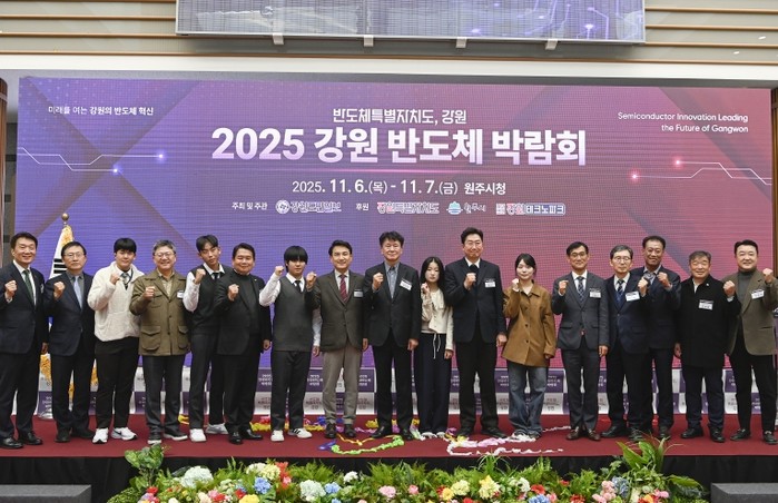 [코리아 이슈저널=최제구 기자] 강원도민일보(사장 경민현)가 주관하고 강원특별자치도와 원주시가 후원하는 「2025 강원 반도체 박람회」가 11월 6일 오후 3시, 원주시청 로비에서 성황리에 개막했다.