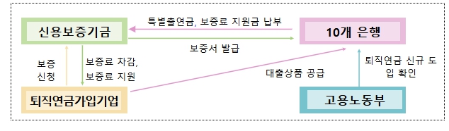 고용노동부 주관으로 민·관·공이 협력하여 실시하는 이번 사업을 통해, 10개 은행은 총 132억원을 신용보증기금에 출연했다. 그리고 신용보증기금에서는 이를 재원으로 퇴직연금제도를 신규 도입한 중소기업이 경영자금을 대출받을 수 있도록 대출금액에 대하여 기업당 최대 5억원, 총량 약 3,300억원 규모의 ‘특별출연 협약보증’ 및 ‘보증료 지원 협약보증’을 지원할 예정이다. 중소기업은 협약보증을 토대로 10개 은행에서 경영자금을 대출받을 수 있다.