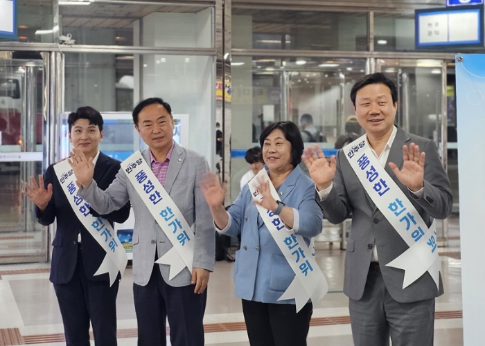 이날 민주당협의회 소속 의원들은 시민들에게 명절 인사를 전하며, 오랜만에 고향을 찾는 귀성객들이 안전하고 편안한 귀성길이 되길 바라는 마음을 함께했다.