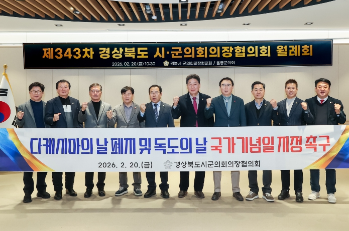 [코리아 이슈저널=김태훈 기자] 울릉군의회는 지난 20일 제343차 경상북도 시·군의회의장협의회 월례회를 개최하고 영토 주권과 소멸위기 지역의 정치적 생존권 확보를 위한 핵심 결의안 2건을 만장일치로 채택했다.