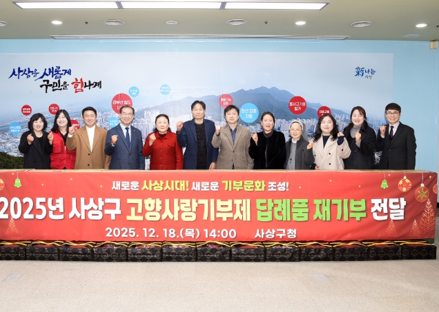 [코리아 이슈저널=김태훈 기자] 부산 사상구는 지난 18일 본관 3층에서‘2025년 고향사랑기부제 답례품 재기부 전달식’을 개최했다고 밝혔다.