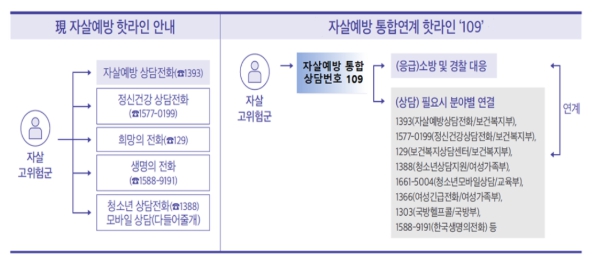 | ▲ 자살예방 상담전화 통합·개편 체계 |