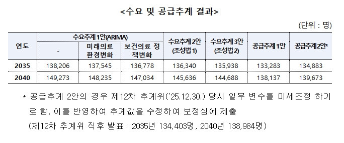 한편, 이날 보정심에 보고된 수급추계 결과는 다음과 같다.