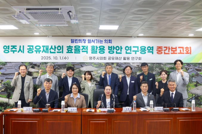 [코리아 이슈저널=김태훈 기자] 영주시의회 의원연구단체인 '공유재산의 효율적 활용 방안 연구회'는 10월 1일 영주시의회 소회의실에서 '공유재산 관리·활용 방안 연구용역' 중간보고회를 개최했다.