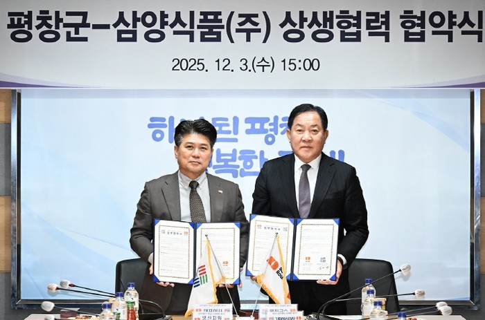 [코리아 이슈저널=최제구 기자] 평창군과 삼양식품은 지방 소멸 위기에 대응하고 지속 가능한 지역 성장 기반을 마련하기 위해 ‘지방 살리기 상생 자매결연’ 업무협약을 체결했다.
