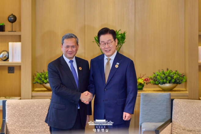 [코리아 이슈저널=최성일 기자] 이재명 대통령은 27일 오전 제47차 아세안 정상회의 참석을 계기로 ‘훈 마넷’ 캄보디아 총리와 취임 후 첫 양자회담을 가졌다.