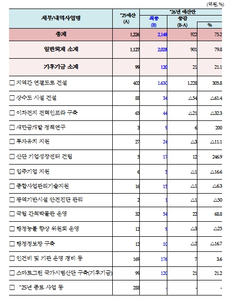 ▲ 새만금개발청 2026년도 확정 예산 현황
