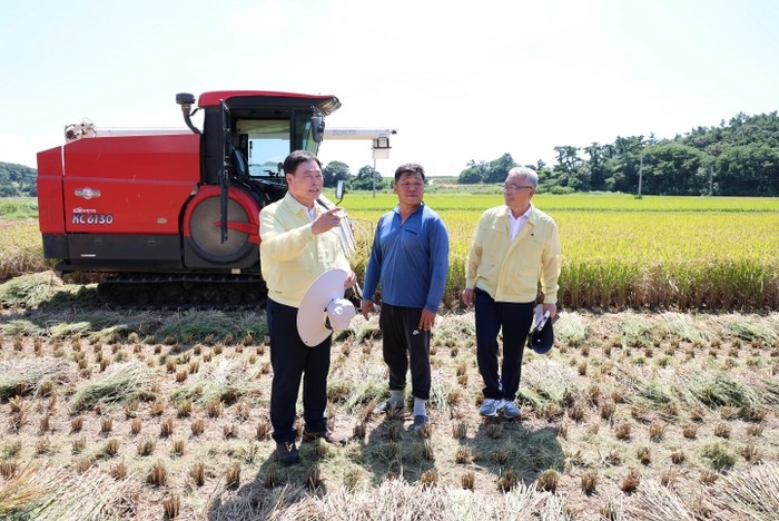 김산 무안군수, 조생종 벼 수확 현장 방문