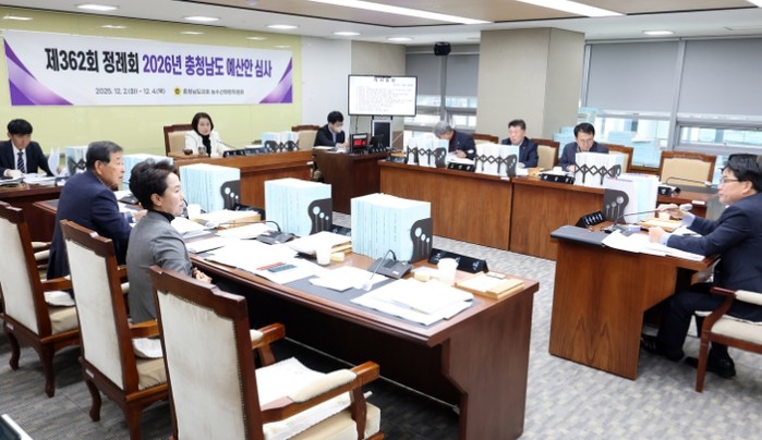 [코리아 이슈저널=홍춘표 기자] 충남도의회 농수산해양위원회는 2일 제362회 정례회 2차 회의에서 충남도 농축산국 소관 2025년도 제3회 추가경정예산안, 2026년 본예산안, 조례 제‧개정안, 동의안 등을 심사했다.