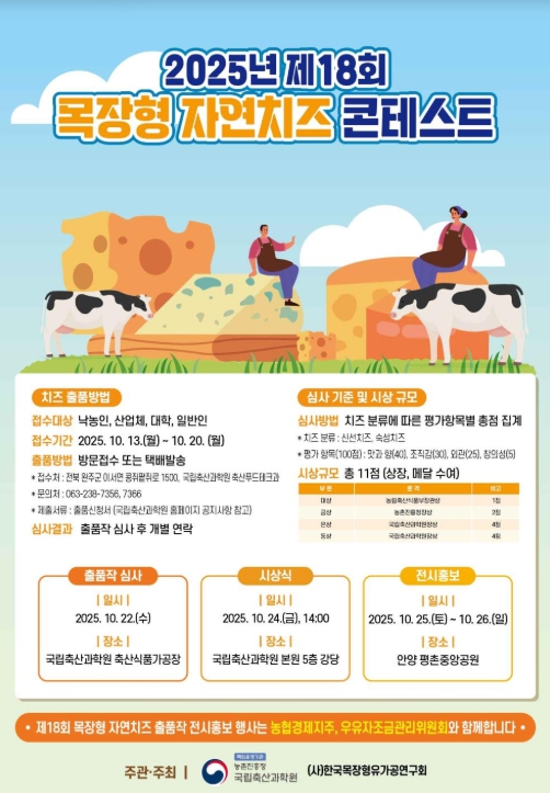 이번 대회 출품 치즈는 10월 25~26일 경기도 안양시 평촌중앙공원에서 열리는 ‘세계 우유의 날, 2025 밀크&치즈 페스티벌’에서 전시될 예정이다.