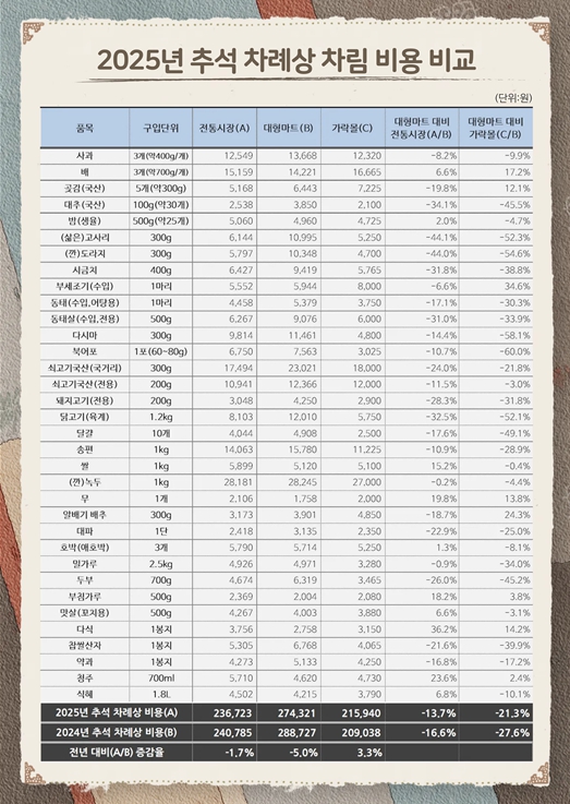| ▲ 2025년 추석 차례상 비용 조사 결과 |