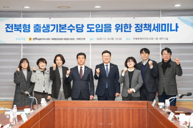 [코리아 이슈저널=홍춘표 기자] 전북특별자치도의회 기획행정위원회 최형열 위원장(전주5)은 18일 도의회 세미나실에서 ‘전북형 출생기본수당 도입을 위한 정책세미나’를 개최했다.