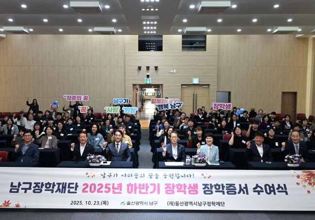 [코리아 이슈저널=김태훈 기자] 재단법인 울산광역시남구장학재단(이사장 서동욱 남구청장)은 23일 남구청 6층에서 ‘2025년 하반기 장학증서 수여식’을 개최했다.