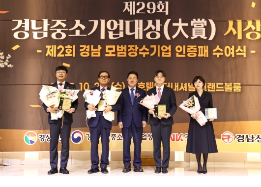 [코리아 이슈저널=김태훈 기자] 경상남도는 22일 오후 호텔 인터내셔널 창원에서 ‘제29회 경남중소기업대상 시상식’ 및 ‘제2회 경남 모범장수기업 인증패 수여식’을 개최했다.