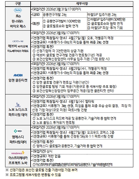 본 프로그램에 참여를 희망하는 기업은 보산진 홈페이지 및 K-바이오파마 넥스트 브리지 웹사이트를 통해 각 프로그램의 상세 내용을 확인할 수 있다.