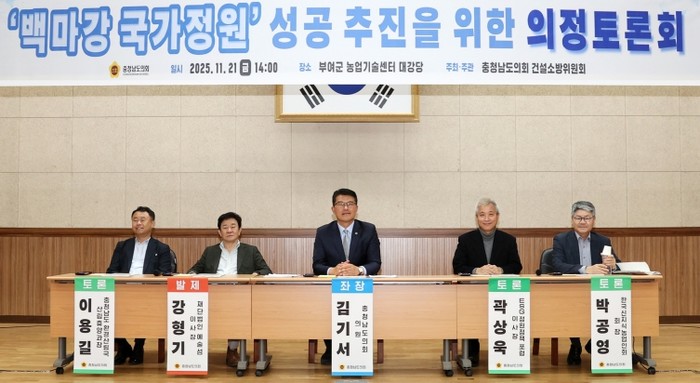 [코리아 이슈저널=홍춘표 기자] 충남도의회는 21일 부여군 농업기술센터 대강당에서 ‘백마강 국가정원 지정을 위한 성공적 추진 방안’을 주제로 의정토론회를 열고, 부여의 역사‧문화‧생태 자원을 활용한 국가정원 추진 방향을 본격 모색했다.