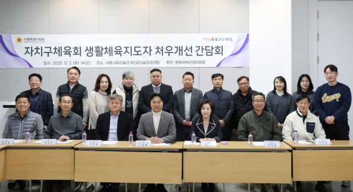 [코리아 이슈저널=최성일 기자] 서울특별시의회 문화체육관광위원회 이종배 위원장 직무대리(국민의힘, 비례대표)를 비롯한 위원들은 지난 12월2일(화) 자치구체육회 관계자들과 간담회를 열고 생활체육지도자 처우개선과 호봉제 도입을 위한 의견을 수렴했다.