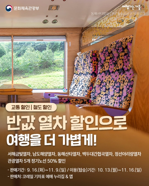 문화체육관광부, 반값 열차 할인으로 여행을 더 가볍게!