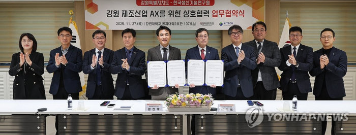 강원도는 27일 강원 제조산업의 AX(인공지능 전환)를 위한 상호 협력 강화를 위해 한국생산기술연구원과 업무협약(MOU)을 체결했다고 28일 밝혔다.