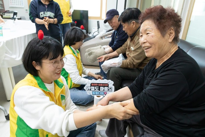 평생 흙을 일궈온 어르신들의 투박한 손은 파라핀 욕조 안에서 부드럽게 녹아내렸다. 농사일로 관절마다 염증이 생겨 통증을 달고 살았다던 한 아버님은 봉사자의 정성 어린 마사지에 눈시울을 붉혔다. "농사짓느라 손 마디마디 안 아픈 곳이 없었는데, 이렇게 따뜻하게 감싸주고 주물러주니 통증이 싹 가시는 것 같아. 마음까지 다 녹는 기분이구먼."
