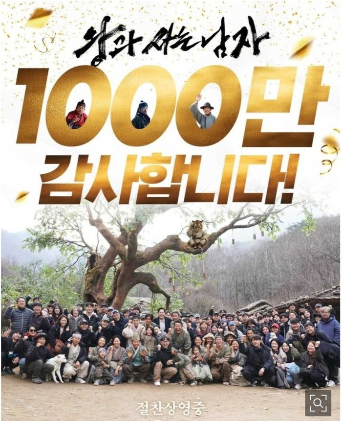 6일 영화진흥위원회 영화관입장권 통합전산망에 따르면, '왕과 사는 남자'는 이날 오후 6시 30분 기준으로 누적 관객 1,000만 855명을 기록했다. 이는 지난 2024년 5월 '범죄도시4' 이후 약 1년 10개월 만에 나온 천만 기록이자, 역대 국내 개봉작 중 34번째 성과다.