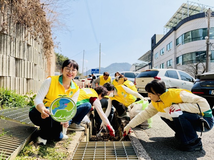 | ▲ 지난 17일 봉암수원지 인근 우수관을 청소하고 있다. (마산지부 제공) |