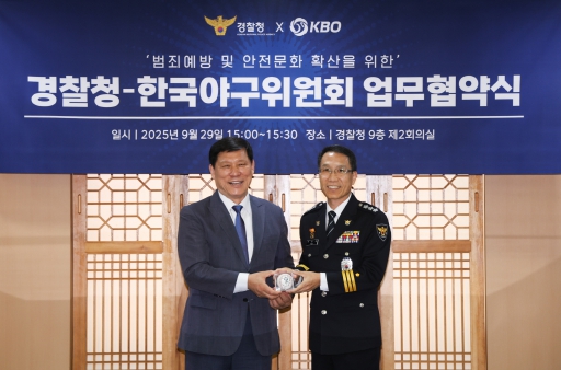 [코리아 이슈저널=최용달 기자] KBO와 경찰청(청장 직무대행 유재성)은 9월 29일(월) 경찰청에서 업무 협약을 체결했다.