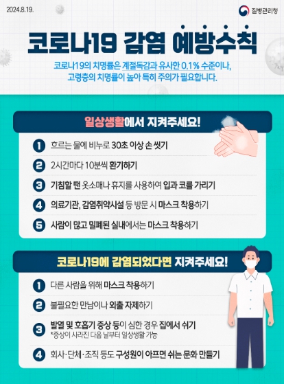 질병관리청은 이번 여름철 코로나19 입원환자 발생이 전년 대비 완만한 증가세와 낮은 유행 수준을 보이나, 9월까지는 유행이 지속될 것으로 예상하고, 면밀하게 모니터링 중이라고 밝혔다.