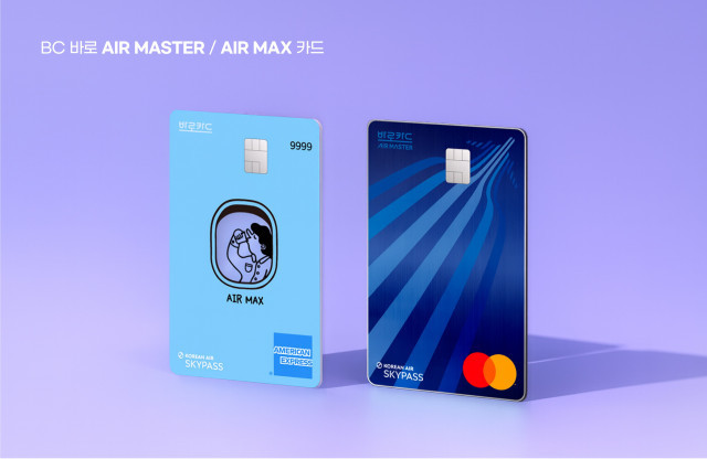 이번에 선보이는 BC 바로카드(자체 발급 카드) 라인업은 △에어 마스터(AIR MASTER) △에어 맥스(AIR MAX) 총 2종이다. 대한항공 스카이패스 마일리지 적립에 주유·교통·아파트관리비와 같은 생활 밀착 영역까지 마일리지로 적립돼 할인 혜택이 더욱 강화됐다.